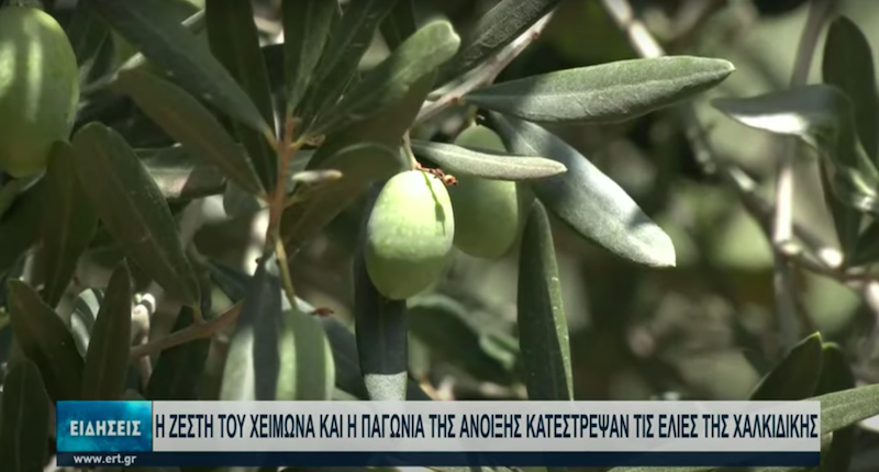 Μια καταστροφική χρονιά βιώνουν οι ελαιοπαραγωγοί της Χαλκιδικής. Η κλιματική αλλαγή με τις ακραίες εναλλαγές του καιρού το χειμώνα και την άνοιξη οδήγησε φέτος σε μείωση της παραγωγή πράσινης ελιάς σε ποσοστό έως και 80%.