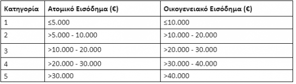 Δυνητικοί ωφελούμενοι του προγράμματος μπορεί να είναι οι αιτούντες που εντάσσονται στις παρακάτω εισοδηματικές κατηγορίες: