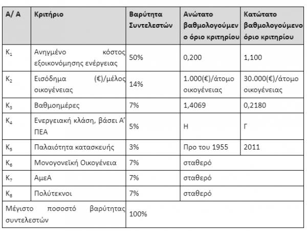 Το ποσοστό επιχορήγησης για τις παρεμβάσεις αυτές ανέρχεται από 40% έως 75% ανάλογα με το εισόδημα των ωφελουμένων/ιδιοκτητών. Οι συνολικές επιλέξιμες δαπάνες που καλύπτει το πρόγραμμα ανέρχονται σε έως 22.500 ευρώ.