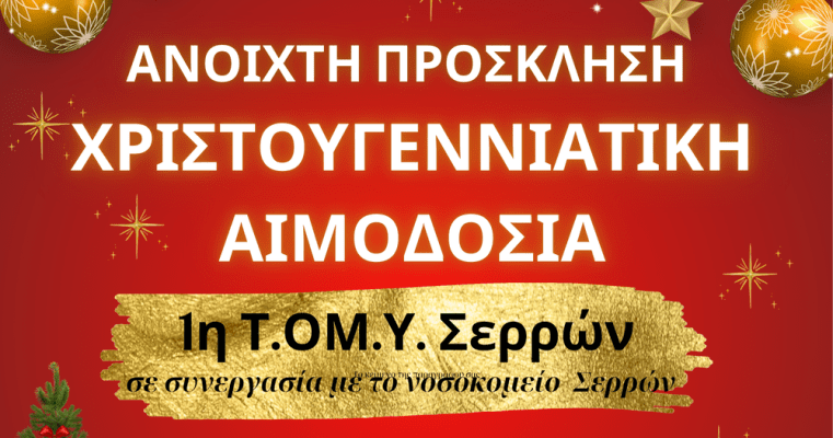 1η Τ.ΟΜ.Υ. Σερρών: «Χριστουγεννιάτικη Εθελοντική Αιμοδοσία»
