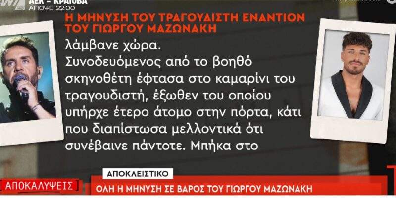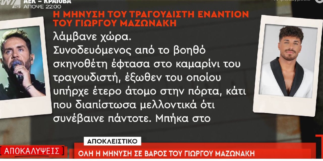 Απόσπασμα από τη μήνυση του 21χρονου στον Γιώργο Μαζωνάκη αποκάλυψε ο Πέτρος Κουσουλός και αναφέρθηκε στη χρήση κοκαΐνης.