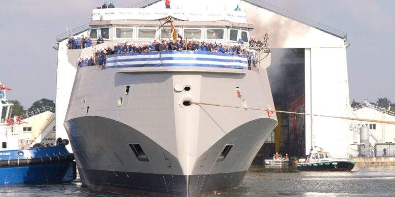 Πραγματοποιήθηκε, χθες, υπό την παρουσία του υπουργού Εθνικής Άμυνας, Νίκου Δένδια, η τελετή ονοματοδοσίας και η ύψωση της ελληνικής σημαίας στην πρώτη φρεγάτα Belharra, «Κίμων», στο λιμάνι της Λοριάν, στη Γαλλία.