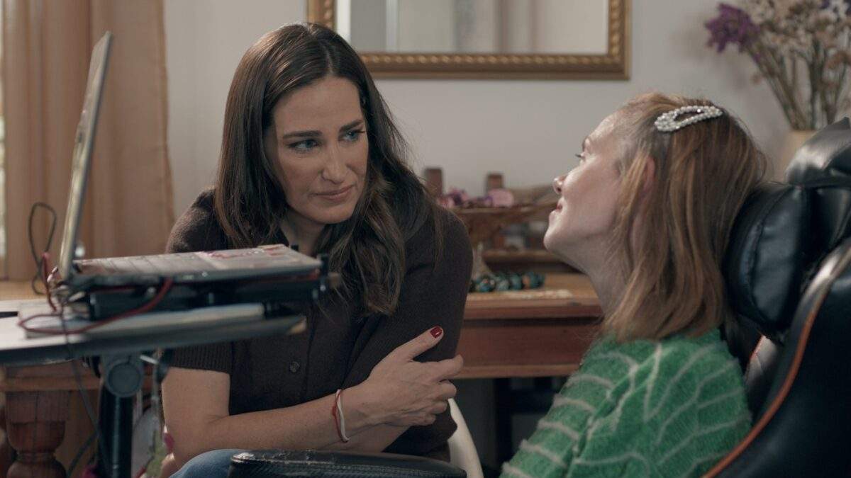 Η Ειρήνη ζητάει εξηγήσεις από την Ασπασία γιατί της έκρυψε την αλήθεια για τον βιολογικό της πατέρα, όπως θα δούμε στην συνέχεια της σειράς Η Γη της Ελιάς..