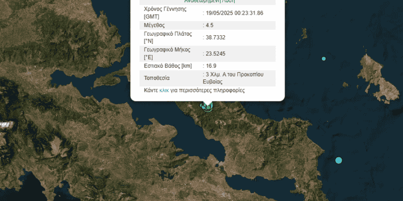 Νέος σεισμός 4,5 Ρίχτερ τα ξημερώματα στη Βόρεια Εύβοια – Αισθητός και στην Αττική
