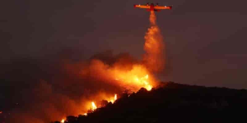 Μέχρι την τελευταία στιγμή επιχειρούσαν τα εναέρια μέσα στο μέτωπο της φωτιάς που μαίνεται από το μεσημέρι της Παρασκευής (8/8) στην Κερατέα.