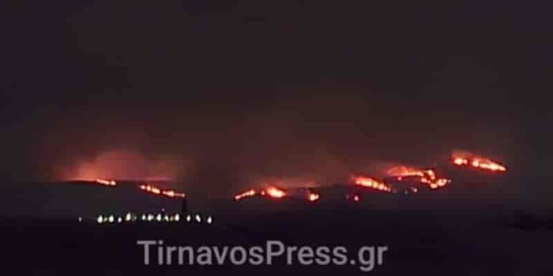 Μαίνεται η μεγάλη φωτιά στον Τύρναβο – Συνεχίζεται η μάχη με τις φλόγες