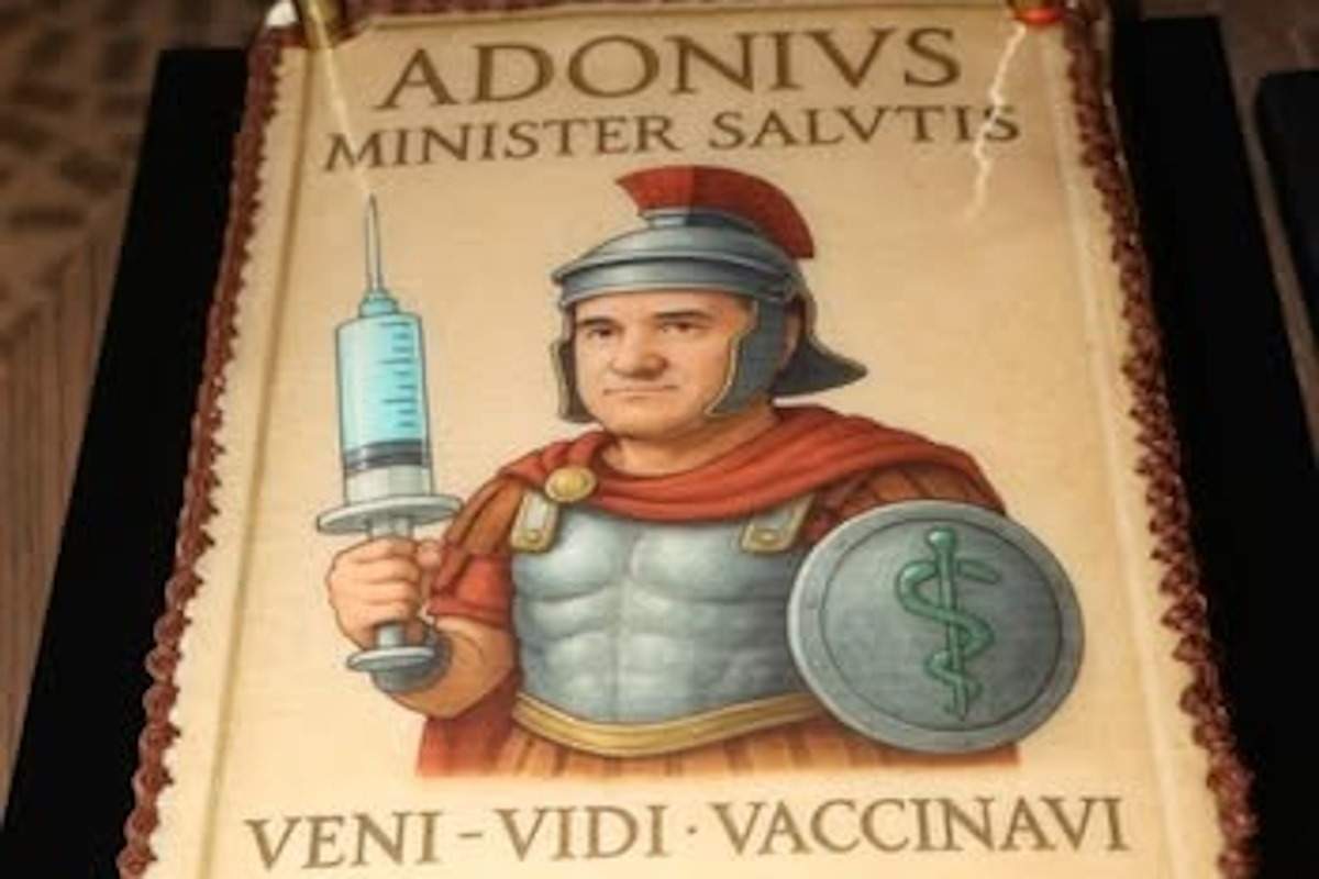 Άδωνις Γεωργιάδης: Η τούρτα – έκπληξη της Ευγενίας Μανωλίδου για τα γενέθλιά του και το «Veni, Vidi, Vaccinavi»