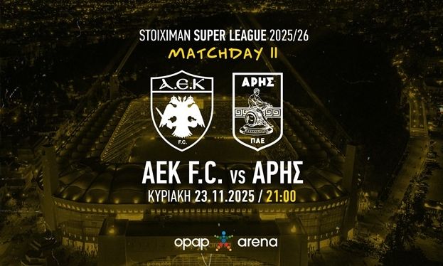 Δείτε LIVE την εξέλιξη του «κιτρινόμαυρου» ντέρμπι, ΑΕΚ – Άρης, για την 11η αγωνιστική της Super League.