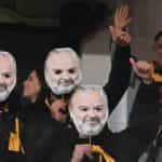 ΑΕΚ – Athens Kallithea: Φίλοι της Ένωσης στην OPAP Arena με μάσκα Ηλιόπουλου