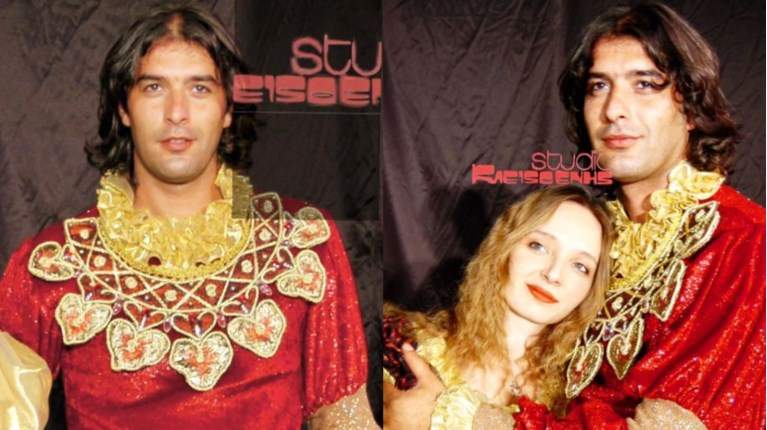 Αγαπημένος ηθοποιός Αγνώριστος αγκαλιά με πανέμορφη συμπρωταγωνίστριά να παίζει σε παιδική παράσταση