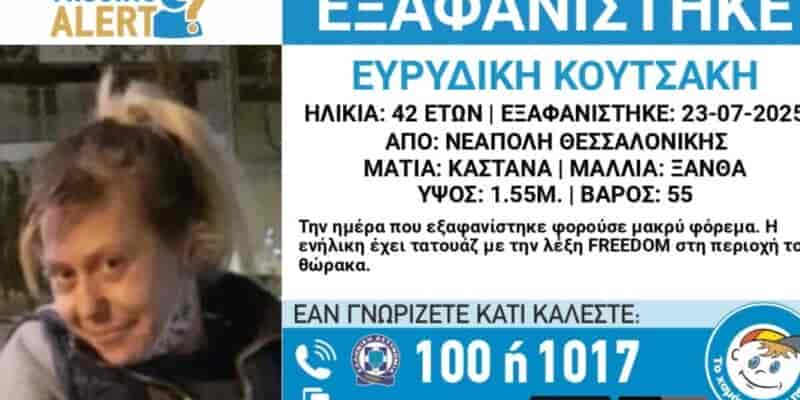 Αγωνία για την εξαφάνιση 42χρονης από τη Θεσσαλονίκη – Η ανακοίνωση από το Χαμόγελο του Παιδιού