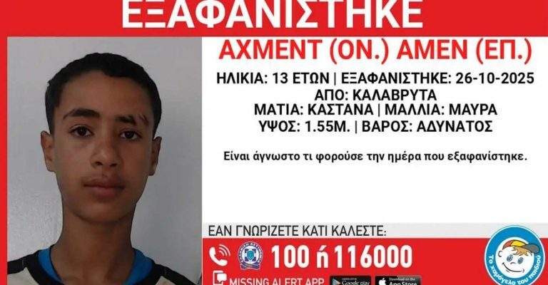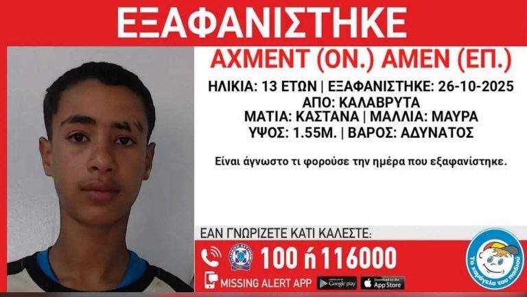 Αγωνία στα Καλάβρυτα για 13χρονο – Αναζητείται σύμφωνα με το «Χαμόγελο του Παιδιού