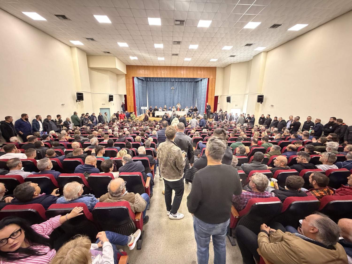 Η προσέλευση ήταν τόσο μεγάλη, ώστε η αίθουσα γέμισε ασφυκτικά, με πολλούς αγρότες να παρακολουθούν όρθιοι, ενώ αρκετοί έμειναν εκτός κτηρίου ακούγοντας από μεγάφωνα. Το κλίμα ήταν εκρηκτικό, με τους αγρότες να εμφανίζονται αποφασισμένοι για σκληρή σύγκρουση με την κυβέρνηση.