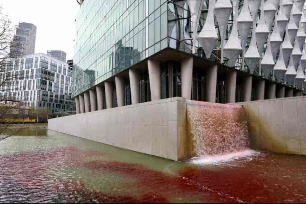 Ακτιβιστές της Greenpeace συνελήφθησαν αφού έριξαν κόκκινη μπογιά σε ένα σιντριβάνι έξω από την πρεσβεία των ΗΠΑ