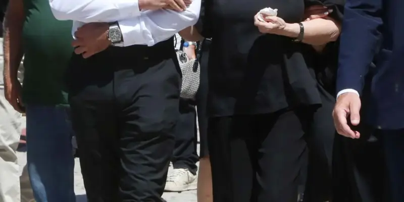 Αλεξάνδρα Νικολαΐδου: Τραγική φιγούρα στην κηδεία μητέρα της – Υποβασταζόμενη από τον εγγονό της (Φωτογραφίες)