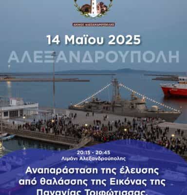 Αναπαράσταση της έλευσης της εικόνας της Παναγίας Τριφώτισσας από την ιστορική Αίνο στο λιμάνι της Αλεξανδρούπολης