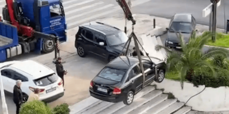 Απίστευτο βίντεο: Ηλικιωμένη κατέβηκε τις σκάλες με το αυτοκίνητο και το πάρκαρε σε είσοδο εμπορικού στη λεωφόρο Κηφισίας