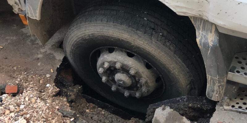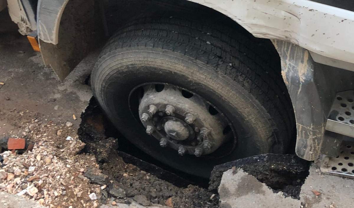 Απορριμματοφόρο παγιδεύτηκε σε μεγάλη λακκούβα στον Άγιο Δημήτριο
