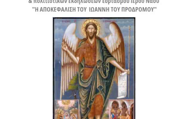 Αργυρούπολη: Διήμερο Εορταστικών – Θρησκευτικών – Λαογραφικών και Πολιτιστικών εκδηλώσεων εορτασμού Ιερού Ναού «Η Αποκεφάλιση του Ιωάννη του Προδρόμου»