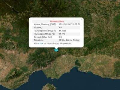 ΤΕΛΕΥΤΑΙΑ ΝΕΑΣεισμική δόνηση 4,5 Ρίχτερ στην ΞάνθηΣεισμός 4,5 Ρίχτερ στην Ξάνθη με επίκεντρο 13 χλμ βορειοδυτικά της πόλης και εστιακό βάθος ...By ΕΙΔΗΣΕΙΣ 2475 Νοεμβρίου, 2025