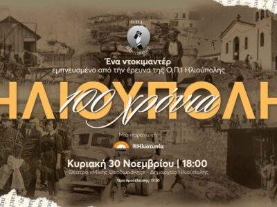 BHMA«100 Χρόνια Ηλιούπολη»: Ένα ντοκιμαντέρ για τα 100 χρόνια από τη γέννηση της HλιούποληςΤο ντοκιμαντέρ αποτελεί το αποτέλεσμα 14 μηνών έρευνας, γυρισμάτων και συνεντεύξεων, βασισμένο στο πολύτιμο ιστορικό ...By ΕΙΔΗΣΕΙΣ 2475 Νοεμβρίου, 2025