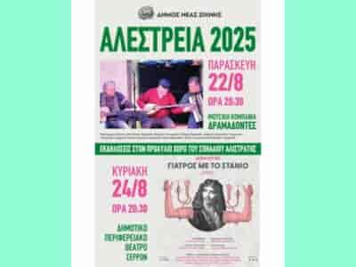 ΣΕΡΡΕΣΑΛΕΣΤΡΕΙΑ 2025 – Εκδηλώσεις στο Σπήλαιο ΑλιστράτηςΑΛΕΣΤΡΕΙΑ 2025 – Εκδηλώσεις στο Σπήλαιο Αλιστράτης Μετάβαση στην Πηγή SERRES POST Author: Φανή ΑσπογαλήBy ΕΙΔΗΣΕΙΣ 24717 Αυγούστου, 2025