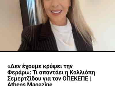 ΠΟΛΙΤΙΚΗΚαλλιόπη Σεμερτζίδου για ΟΠΕΚΕΠΕ: «Δεν έχουμε κρύψει τη Ferrari – Κάθε προσπάθεια δυσφήμισης είναι άδικη»Στο επίκεντρο της επικαιρότητας βρίσκεται τα τελευταία 24ωρα η Καλλιόπη Σεμερτζίδου, έπειτα από την παραίτησή ...By ΕΙΔΗΣΕΙΣ 2479 Αυγούστου, 2025