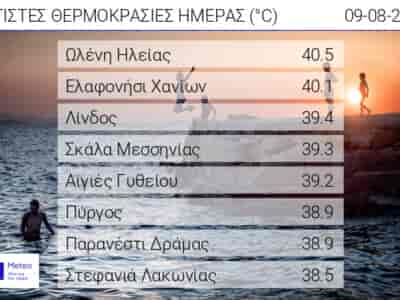 ΚΟΙΝΩΝΙΑΧανιά: 40,1 βαθμοί η θερμοκρασία στο Ελαφονήσι το Σάββατο – Στο Έλος η μοναδική βροχόπτωση στη χώραΧανιά: 40,1 βαθμοί η θερμοκρασία στο Ελαφονήσι το Σάββατο – Στο Έλος η μοναδική βροχόπτωση ...By ΕΙΔΗΣΕΙΣ 24710 Αυγούστου, 2025
