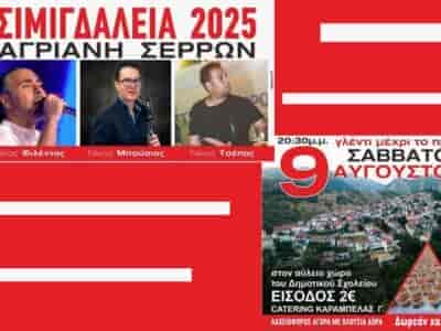 ΣΕΡΡΕΣ“Σιμιγδάλεια 2025” στην Αγριανή Σερρών“Σιμιγδάλεια 2025” στην Αγριανή Σερρών Μετάβαση στην Πηγή Author: Φανή ΑσπογαλήBy ΕΙΔΗΣΕΙΣ 2471 Αυγούστου, 2025