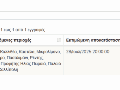 ΚΟΙΝΩΝΙΑΧωρίς ρεύμα λόγω βλάβης Καλλιθέα, Ρέντης και πολλές περιοχές του ΠειραιάΧωρίς ρεύμα λόγω βλάβης Καλλιθέα, Ρέντης και πολλές περιοχές του Πειραιά Το EIDISIS247 συγκεντρώνει ειδήσεις ...By ΕΙΔΗΣΕΙΣ 24728 Ιουλίου, 2025