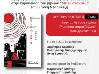 ΔΡΑΜΑΣήμερα στις 21.00 η παρουσίαση του βιβλίου του Γιάννη Νταουλτζή «Με το στανιό»Σήμερα στις 21.00 η παρουσίαση του βιβλίου του Γιάννη Νταουλτζή «Με το στανιό» Μετάβαση στην ...By ΕΙΔΗΣΕΙΣ 24728 Ιουλίου, 2025