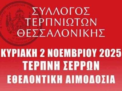 ΣΕΡΡΕΣΕθελοντική αιμοδοσία του Συλλόγου Τερπνιωτών ΘεσσαλονίκηςΕθελοντική αιμοδοσία του Συλλόγου Τερπνιωτών Θεσσαλονίκης Μετάβαση στην Πηγή SERRES POST Author: Φανή ΑσπογαλήBy ΕΙΔΗΣΕΙΣ 24731 Οκτωβρίου, 2025