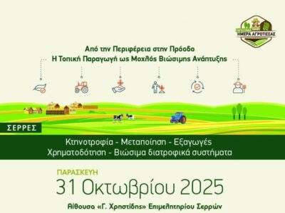ΣΕΡΡΕΣΕΒΕΣ – Σήμερα η Εκδήλωση: «Από την Περιφέρεια στην Πρόοδο: Η Τοπική Παραγωγή ως Μοχλός Βιώσιμης Ανάπτυξης»ΕΒΕΣ – Σήμερα η Εκδήλωση: «Από την Περιφέρεια στην Πρόοδο: Η Τοπική Παραγωγή ως Μοχλός ...By ΕΙΔΗΣΕΙΣ 24731 Οκτωβρίου, 2025