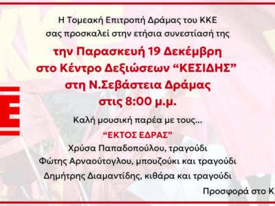 ΔΡΑΜΑΚΚΕ Δράμας – Ετήσια συνεστίασηΚΚΕ Δράμας – Ετήσια συνεστίαση Μετάβαση στην Πηγή ΕΡΓΑΣΙΑ ΣΥΝ Author: sioutopoulosBy ΕΙΔΗΣΕΙΣ 24717 Δεκεμβρίου, 2025