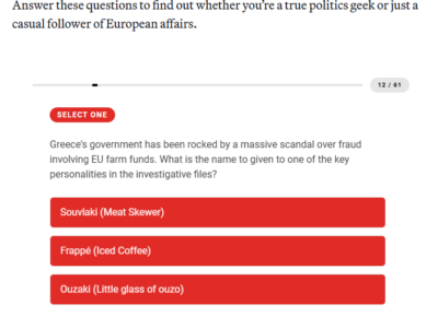 ΚΟΙΝΩΝΙΑSouvlaki, frappe ή ouzaki: Ο ΟΠΕΚΕΠΕ ανάμεσα στις ερωτήσεις του κουίζ του Politico για το 2025Souvlaki, frappe ή ouzaki: Ο ΟΠΕΚΕΠΕ ανάμεσα στις ερωτήσεις του κουίζ του Politico για το ...By ΕΙΔΗΣΕΙΣ 24725 Δεκεμβρίου, 2025