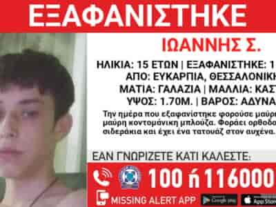 NEWSITΘεσσαλονίκη: Συναγερμός για την εξαφάνιση 15χρονου από την Ευκαρπία – Η ανακοίνωση από το «Χαμόγελο του Παιδιού»Θεσσαλονίκη: Συναγερμός για την εξαφάνιση 15χρονου από την Ευκαρπία – Η ανακοίνωση από το «Χαμόγελο ...By ΕΙΔΗΣΕΙΣ 24719 Ιουνίου, 2025