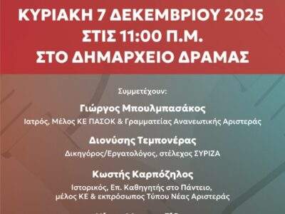 ΔΡΑΜΑΕκδήλωση – συζήτηση «για μια προοδευτική εναλλακτική πρόταση»Εκδήλωση – συζήτηση «για μια προοδευτική εναλλακτική πρόταση» Μετάβαση στην Πηγή ΕΡΓΑΣΙΑ ΣΥΝ Author: sioutopoulosBy ΕΙΔΗΣΕΙΣ 2474 Δεκεμβρίου, 2025