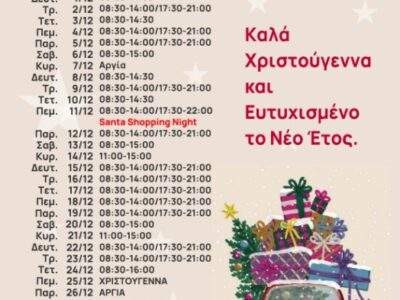 ΞΑΝΘΗΞάνθη : Ανακοινώθηκε το εορταστικό ωράριο για τα Χριστούγεννα και την ΠρωτοχρονιάΞάνθη : Ανακοινώθηκε το εορταστικό ωράριο για τα Χριστούγεννα και την Πρωτοχρονιά Μετάβαση στην Πηγή ...By ΕΙΔΗΣΕΙΣ 2474 Δεκεμβρίου, 2025