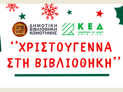 ΡΟΔΟΠΗΚομοτηνή: Χριστούγεννα στη Δημοτική Βιβλιοθήκη με δράσεις και εργαστήρια για μικρούς & μεγάλουςΚομοτηνή: Χριστούγεννα στη Δημοτική Βιβλιοθήκη με δράσεις και εργαστήρια για μικρούς & μεγάλους Μετάβαση στην ...By ΕΙΔΗΣΕΙΣ 24710 Δεκεμβρίου, 2025
