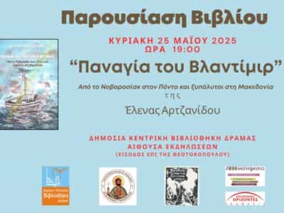 ΔΡΑΜΑΔράμα: Παρουσίαση του βιβλίου «Παναγία του Βλαντίμιρ – Από το Νοβοροσίσκ στον Πόντο και ξυπόλυτοι στη Μακεδονία»Δράμα: Παρουσίαση του βιβλίου «Παναγία του Βλαντίμιρ – Από το Νοβοροσίσκ στον Πόντο και ξυπόλυτοι ...By ΕΙΔΗΣΕΙΣ 24721 Μαΐου, 2025
