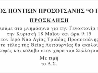 ΔΡΑΜΑΠροσοτσάνη: Τιμή της μνήμης των θυμάτων της Γενοκτονίας των ΠοντίωνΠροσοτσάνη: Τιμή της μνήμης των θυμάτων της Γενοκτονίας των Ποντίων Μετάβαση στην Πηγή Author: sioutopoulosBy ΕΙΔΗΣΕΙΣ 24714 Μαΐου, 2025