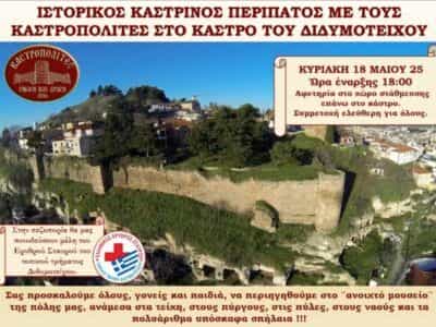 ΕΒΡΟΣΙστορικός καστρινός περίπατος με τους Καστροπολίτες στο κάστρο του ΔιδυμοτείχουΙστορικός καστρινός περίπατος με τους Καστροπολίτες στο κάστρο του Διδυμοτείχου Μετάβαση στην Πηγή EVROSNEWS Author: ...By ΕΙΔΗΣΕΙΣ 24714 Μαΐου, 2025