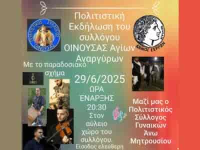 ΣΕΡΡΕΣΠολιτιστική Εκδήλωση του Συλλόγου Οινούσσας – Αγίων ΑναργύρωνΠολιτιστική Εκδήλωση του Συλλόγου Οινούσσας – Αγίων Αναργύρων Μετάβαση στην Πηγή Author: Φανή ΑσπογαλήBy ΕΙΔΗΣΕΙΣ 24722 Ιουνίου, 2025