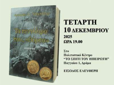 ΔΡΑΜΑΒιβλιοπαρουσίαση στην Πανηπειρωτική Ένωση Ν. ΔράμαςΒιβλιοπαρουσίαση στην Πανηπειρωτική Ένωση Ν. Δράμας Μετάβαση στην Πηγή ΕΡΓΑΣΙΑ ΣΥΝ Author: sioutopoulosBy ΕΙΔΗΣΕΙΣ 2478 Δεκεμβρίου, 2025