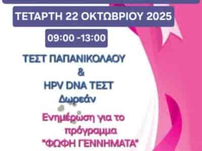 ΣΕΡΡΕΣΔωρεάν Τεστ Παπανικολάου και HPV DNA Τεστ στις Κοινότητες Οινούσσας και ΕπταμύλωνΔωρεάν Τεστ Παπανικολάου και HPV DNA Τεστ στις Κοινότητες Οινούσσας και Επταμύλων Μετάβαση στην Πηγή ...By ΕΙΔΗΣΕΙΣ 24716 Οκτωβρίου, 2025