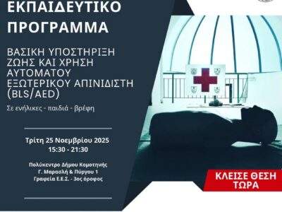 ΡΟΔΟΠΗΣεμινάριο βασικής υποστήριξης ζωής και χρήσης απινιδιστή από τον Ερυθρό Σταυρό ΚομοτηνήςΣεμινάριο βασικής υποστήριξης ζωής και χρήσης απινιδιστή από τον Ερυθρό Σταυρό Κομοτηνής Μετάβαση στην Πηγή ...By ΕΙΔΗΣΕΙΣ 24722 Νοεμβρίου, 2025