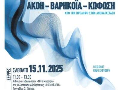 ΣΕΡΡΕΣΣέρρες – Ημερίδα: «Ακοή – βαρηκοΐα – κώφωση. Από την πρόληψη έως την αποκατάσταση»Σέρρες – Ημερίδα: «Ακοή – βαρηκοΐα – κώφωση. Από την πρόληψη έως την αποκατάσταση» Μετάβαση ...By ΕΙΔΗΣΕΙΣ 24711 Νοεμβρίου, 2025