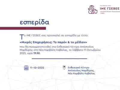 ΣΕΡΡΕΣΙΜΕ ΓΣΕΒΕΕ – Εσπερίδα στην Καβάλα για τις Μικρές ΕπιχειρήσειςΙΜΕ ΓΣΕΒΕΕ – Εσπερίδα στην Καβάλα για τις Μικρές Επιχειρήσεις Μετάβαση στην Πηγή SERRES POST ...By ΕΙΔΗΣΕΙΣ 2476 Οκτωβρίου, 2025