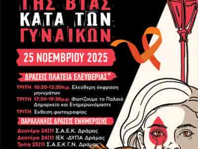 ΔΡΑΜΑΕκδηλώσεις στη Δράμα για την Παγκόσμια Ημέρα Εξάλειψης της Βίας κατά των ΓυναικώνΕκδηλώσεις στη Δράμα για την Παγκόσμια Ημέρα Εξάλειψης της Βίας κατά των Γυναικών Μετάβαση στην ...By ΕΙΔΗΣΕΙΣ 24719 Νοεμβρίου, 2025