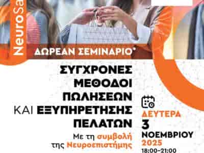 ΔΡΑΜΑΣεμινάριο με θέμα «Σύγχρονες Μέθοδοι Πωλήσεων και Εξυπηρέτησης Πελατών – Με τη συμβολή της Νευροεπιστήμης»Σεμινάριο με θέμα «Σύγχρονες Μέθοδοι Πωλήσεων και Εξυπηρέτησης Πελατών – Με τη συμβολή της Νευροεπιστήμης» ...By ΕΙΔΗΣΕΙΣ 24729 Οκτωβρίου, 2025